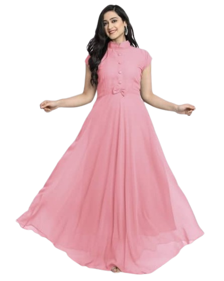 Step into the spotlight with The Amethyst Blossom Gown, a masterpiece of elegance and colour. This stunning floor-length Anarkali style gown is crafted from high-quality, flowing Georgette fabric in a rich, vibrant Purple (or Amethyst) hue. The fabric drapes beautifully, giving the skirt a magnificent flare and movement that will turn heads at any event.