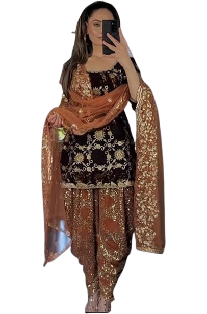 - Set Includes: Heavily embroidered kurti, matching pants, and a net dupatta.